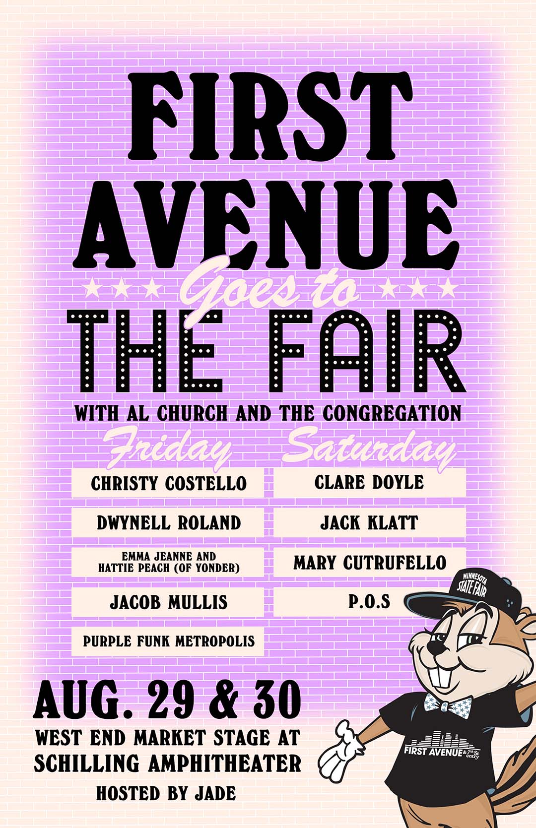 Join us at the Minnesota State Fair for First Avenue Goes To The Fair. The two-day showcase features a variety of local artists who play a role in Minnesota’s music scene – past, present, and future. Expect great live music, a few surprises, and a lot of local love at the Great Minnesota Get-Together this summer.