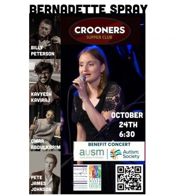 Bernadette Brownrigg Spray is a jazz singer who is making a name for herself among the Twin Cities Jazz community. With her unique style and scatting abilities, Bernadette breathes new life into the Great American Songbook. Diagnosed with autism at age 2, Bernadette discovered singing as her best way to communicate with the world around her. Bernadette’s strong affinity for jazz started at age 7. Her influences include Ella Fitzgerald, Billie Holiday, and Sarah Vaughn, to name just a few. Bernadette holds a Bachelor’s degree in Music Education from Augsburg University. She has performed at Jazz Central Studios, Crooners, The Metronome, Volsteads, The Berlin, as well as The Twin Cities Jazz Festival. She is a current recipient of an MN State Arts Board grant.