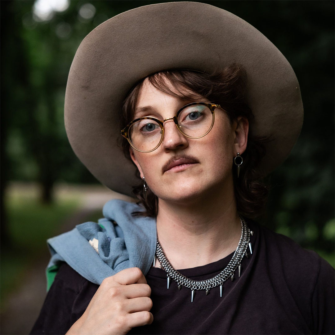 For trans folksinger Creekbed Carter Hogan, everything good is made from the rotten stump of something else. It’s a theme they’ve become familiar with as they’ve made a life weaving stories of growing up religious around songs that pierce the soul, tickle the funny bone, and showcase a unique blend of self-taught folk picking and queer mayhem.