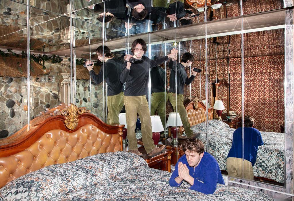 Aaron Graham and Tucker Elkins make up Ray Bull, but they function less like a traditional band and more like a continuous, living feedback loop. They met while in college at Cooper Union, not as musicians, but as visual artists. Graham focused on images, Elkins on film. When they reconnected years later at a gallery show in Brooklyn, they realized they had both been privately drifting toward music. They moved into a loft in Bushwick, and the lines between their lives and their art began to dissolve.